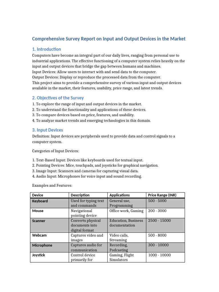 Comprehensive Survey Report on Input and Output Devices in the Market