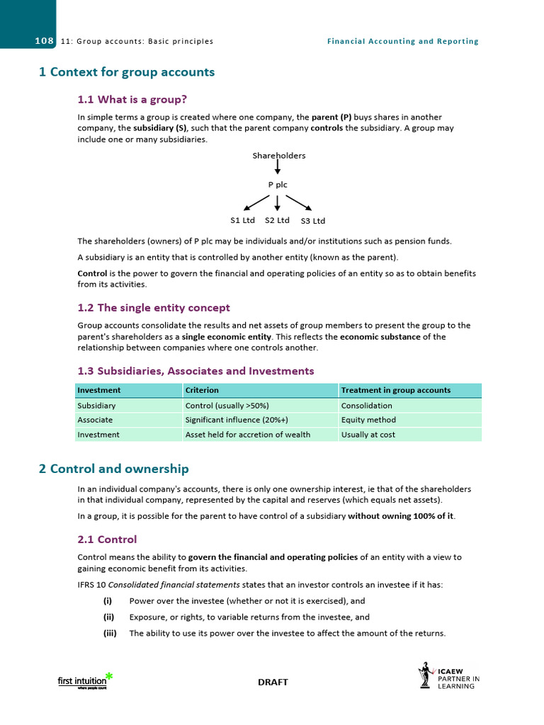 Financial Accounting and Reporting 1 1 : G r o u p a c c o u n t s: B a si c pr i nc i p l e s 109