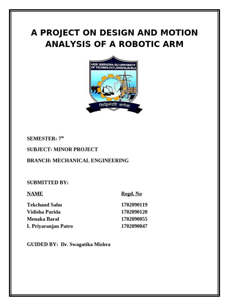 regarding the design and Analysis of the Robotics Arm, and we hope that this report provides a