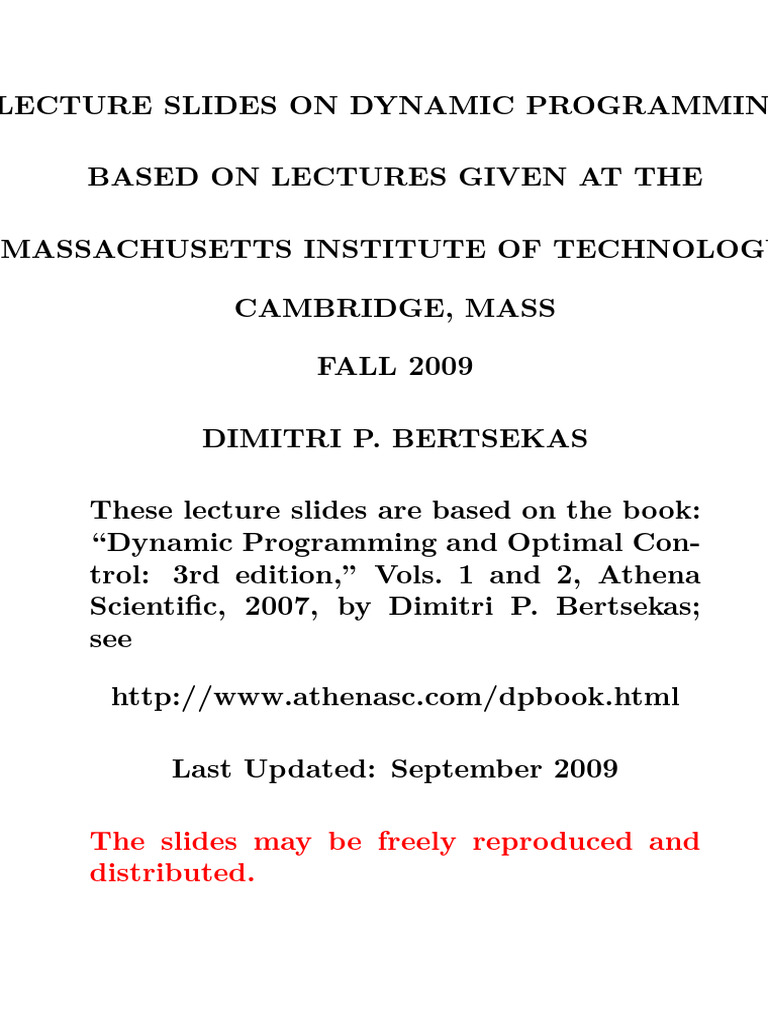 LECTURE SLIDES ON DYNAMIC PROGRAMMIN