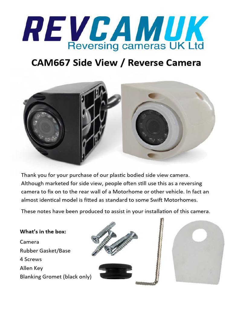 camera to fix on to the rear wall of a Motorhome or other vehicle. In fact an