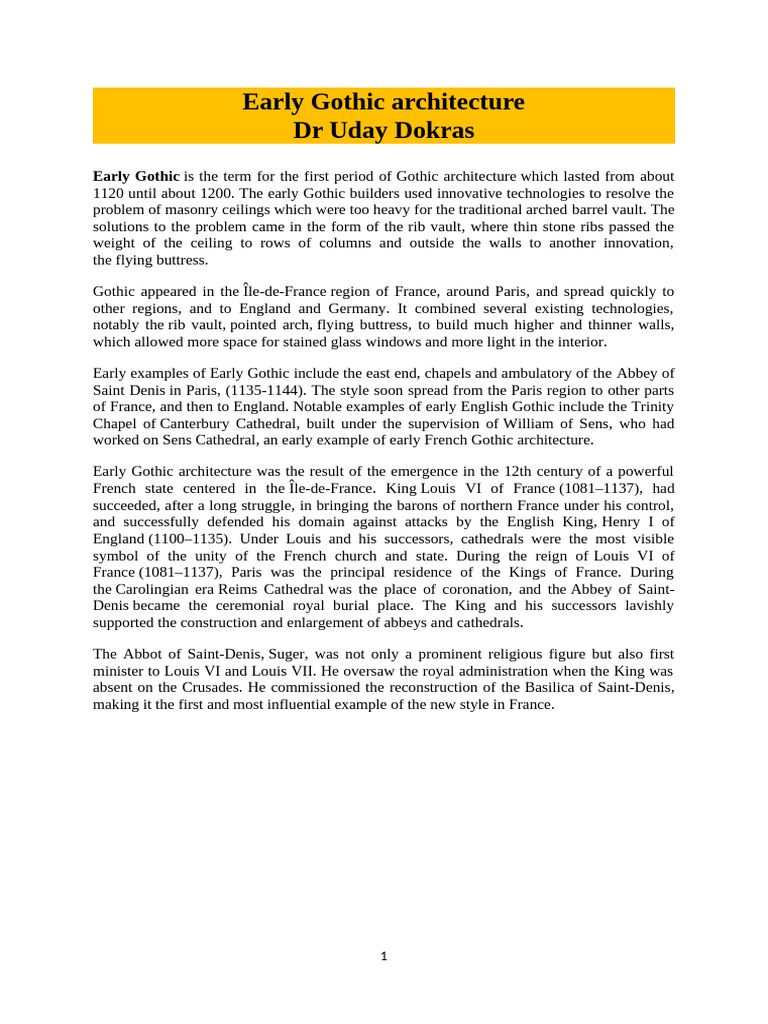 England (1100–1135). Under Louis and his successors, cathedrals were the most visible