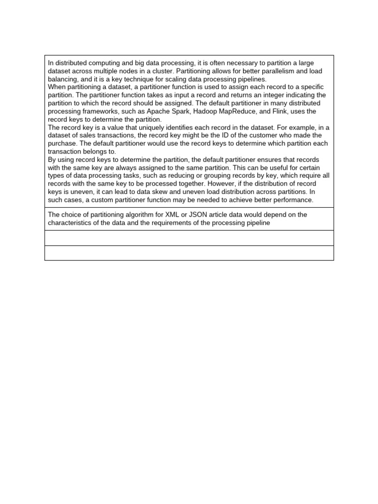 The choice of partitioning algorithm for XML or JSON article data would depend on the