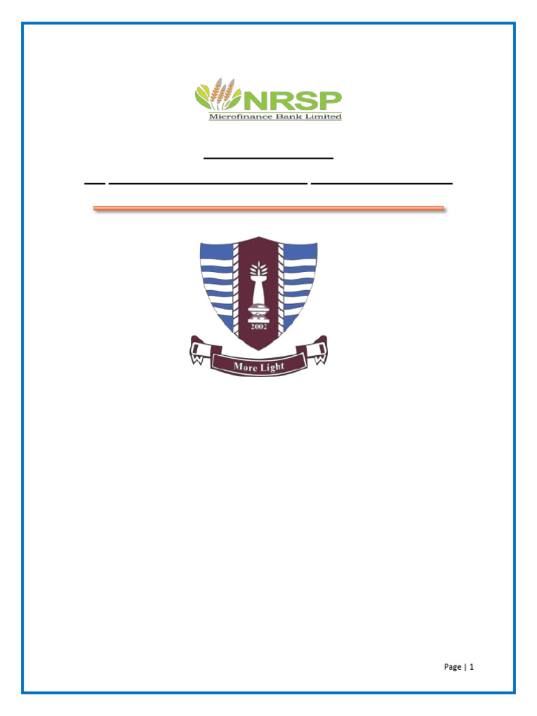 My 6 Week internship at NRSP Microfinance Bank Limited, has been an incredibly valuable and