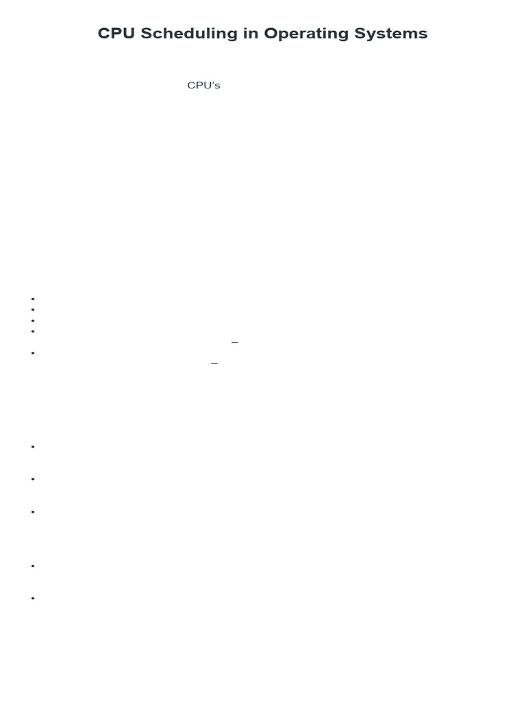 another process is suspended. The main function of CPU scheduling is to ensure that