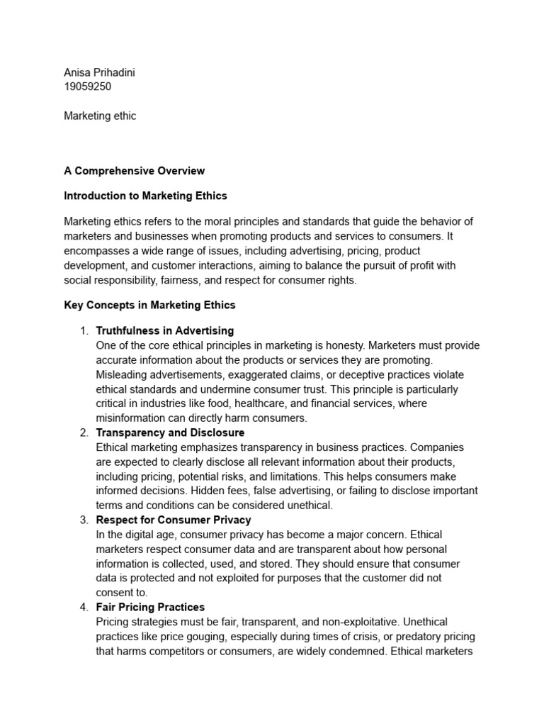 1. Honesty and Transparency One of the core values of ethical marketing is the