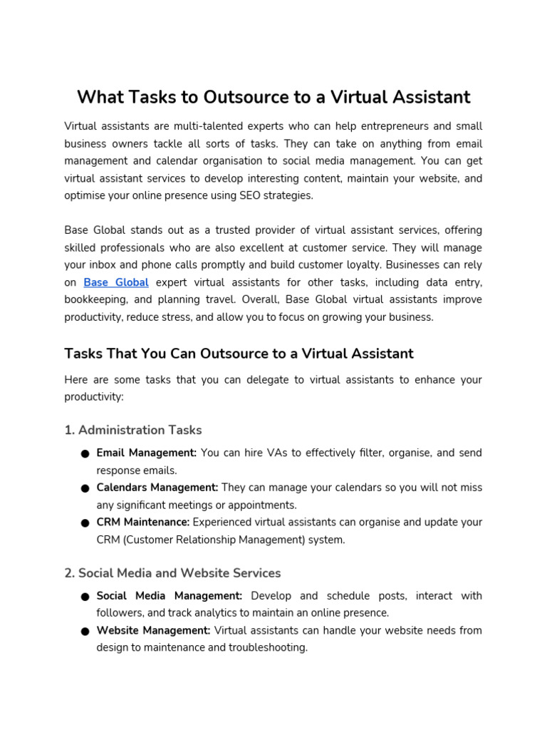 Base Global stands out as a trusted provider of virtual assistant services, offering