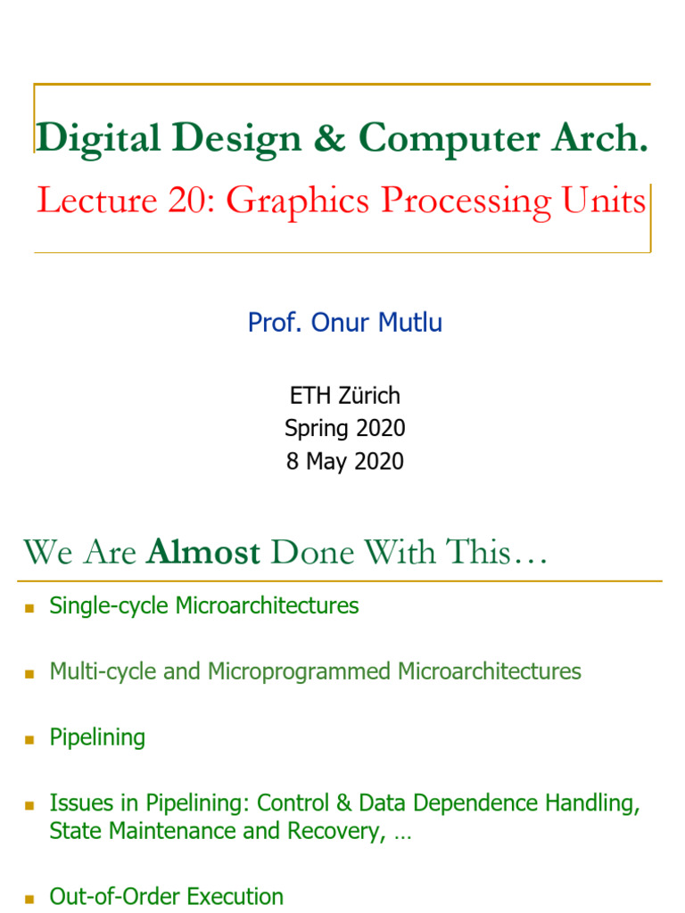Onur Digitaldesign 2020 Lecture20 Gpu Beforelecture
