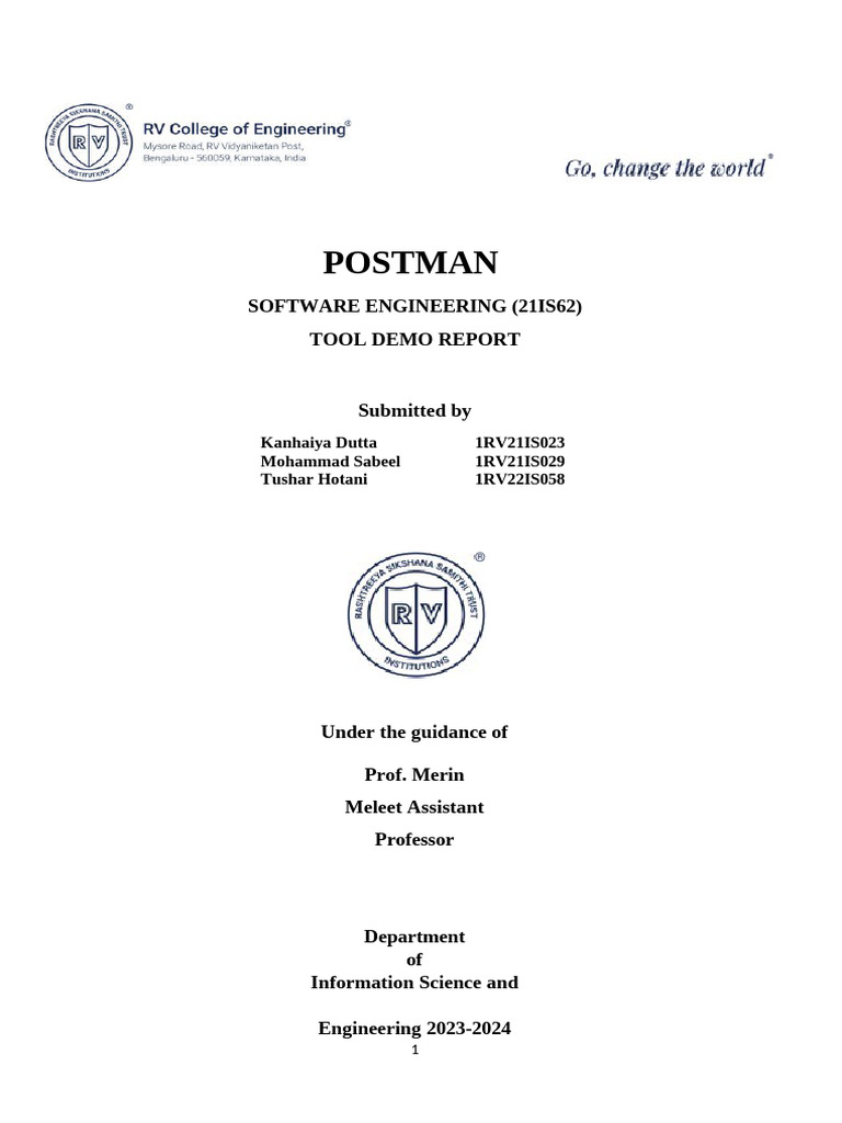 completion of this report on POSTMAN. First and foremost, we are deeply thankful to Prof. Merin
