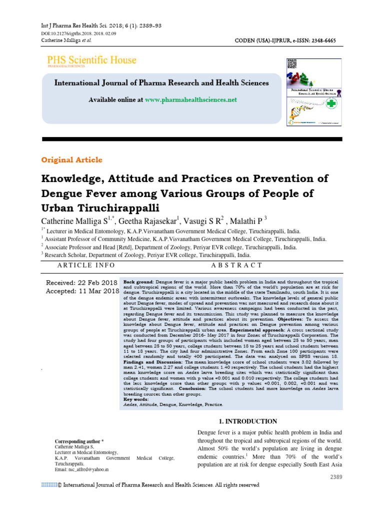 Accepted: 11 Mar 2018 dengue. Tiruchirappalli is a city located in the middle of the state Tamilnadu, south India. It is one