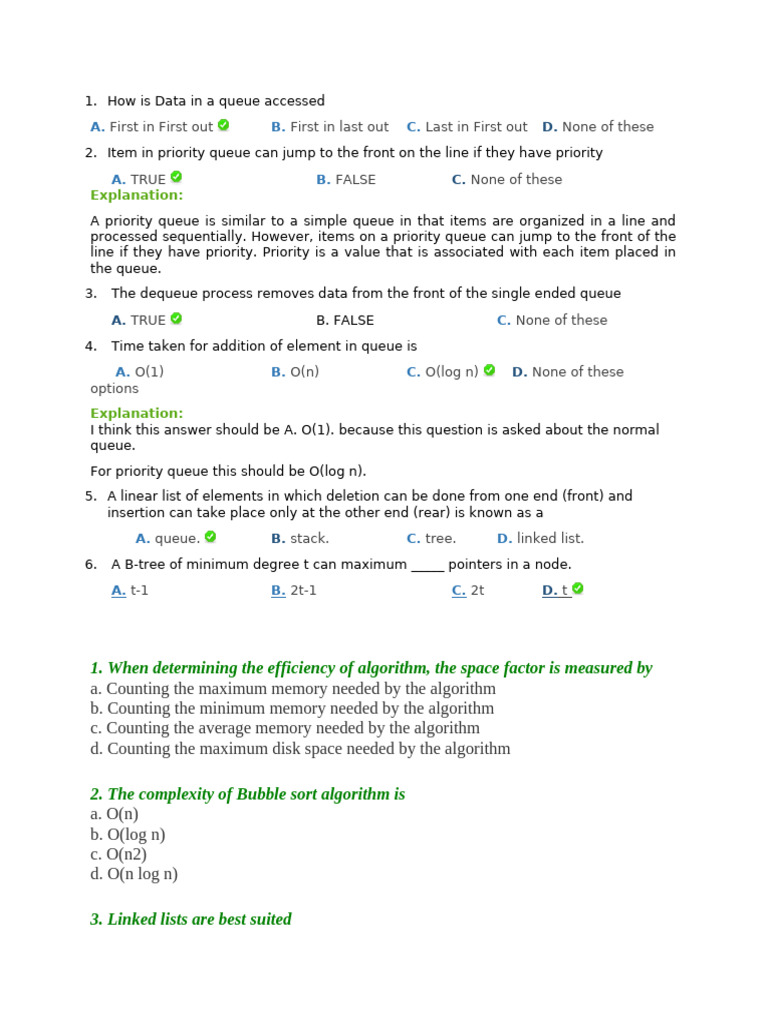 1. When determining the efficiency of algorithm, the space factor is measured by