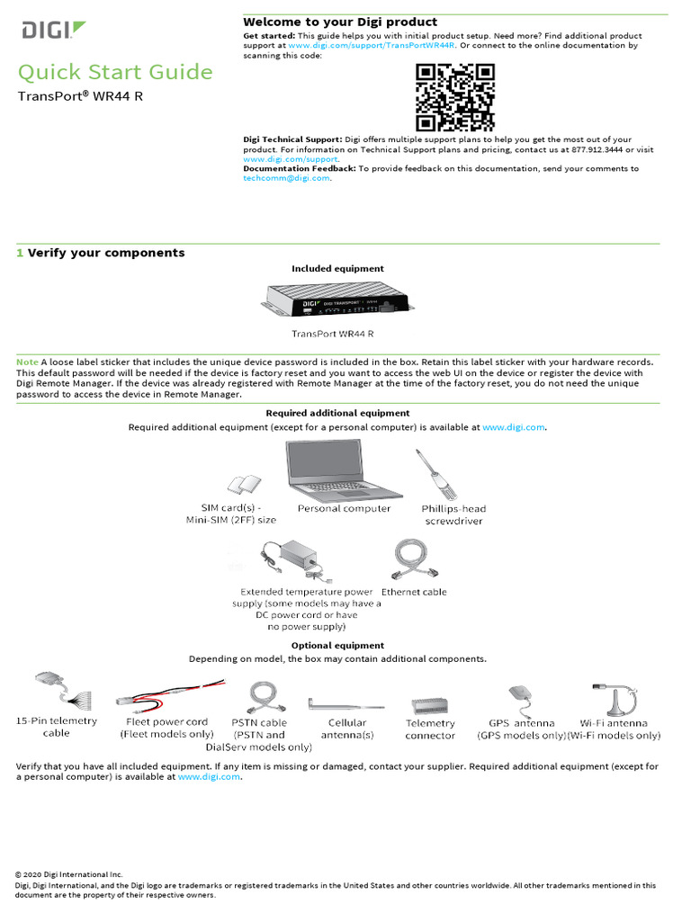 Guide and Digi TransPort Fleet Card User Guide, online at www.digi.com.