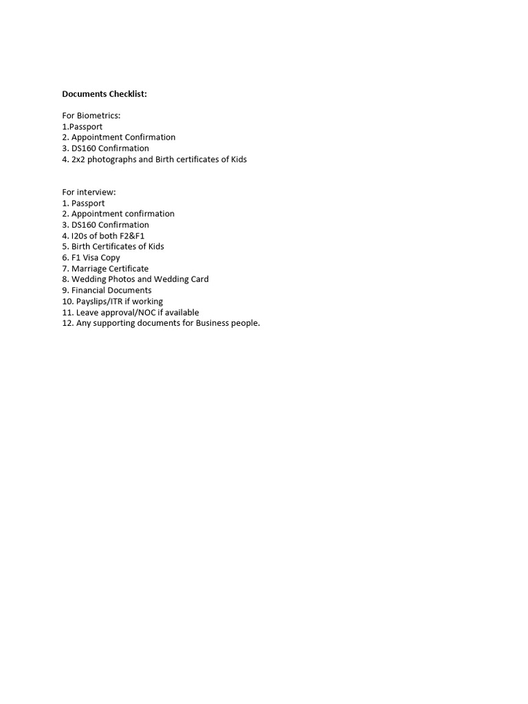 Documents Checklist: