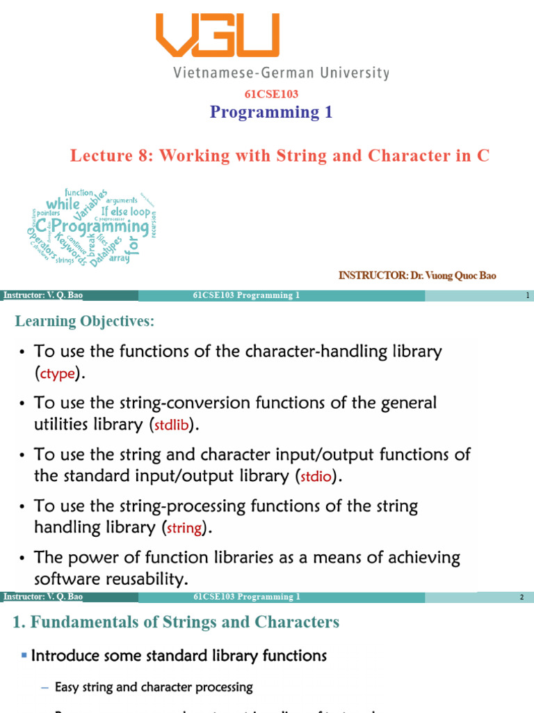 Instructor: V. Q. Bao 61CSE103 Programming 1 2