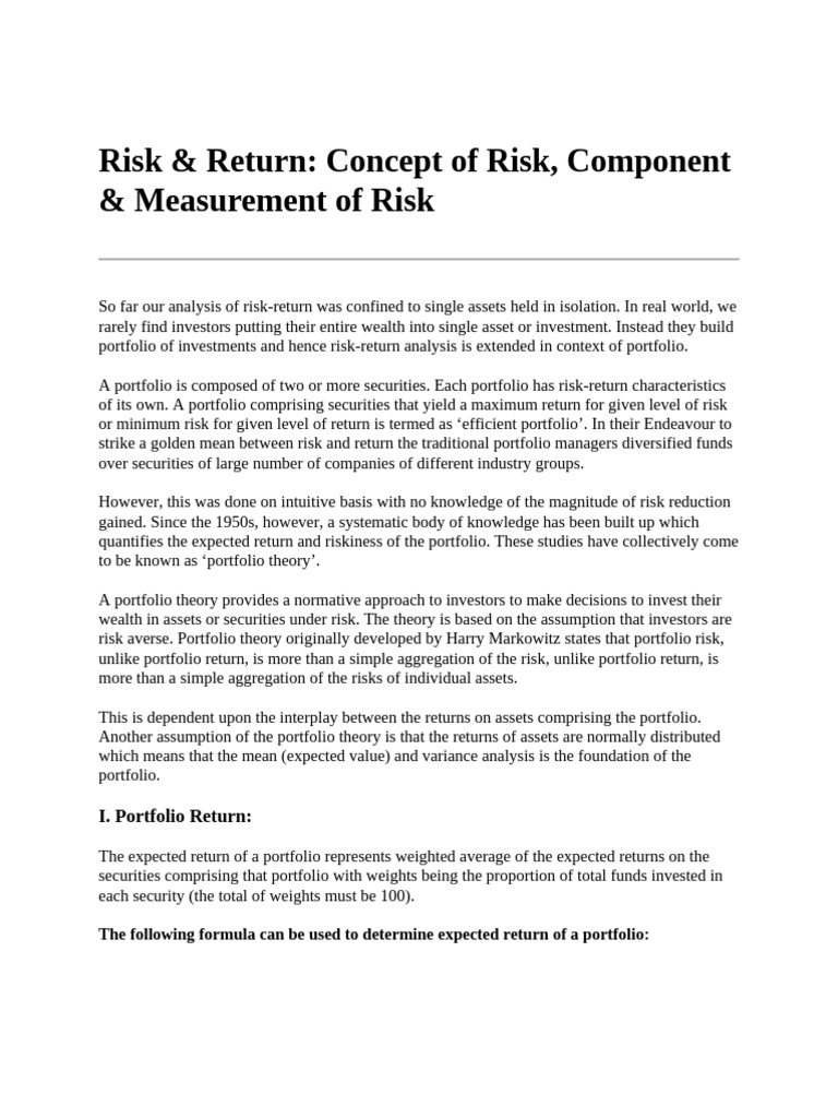 portfolio of investments and hence risk-return analysis is extended in context of portfolio.