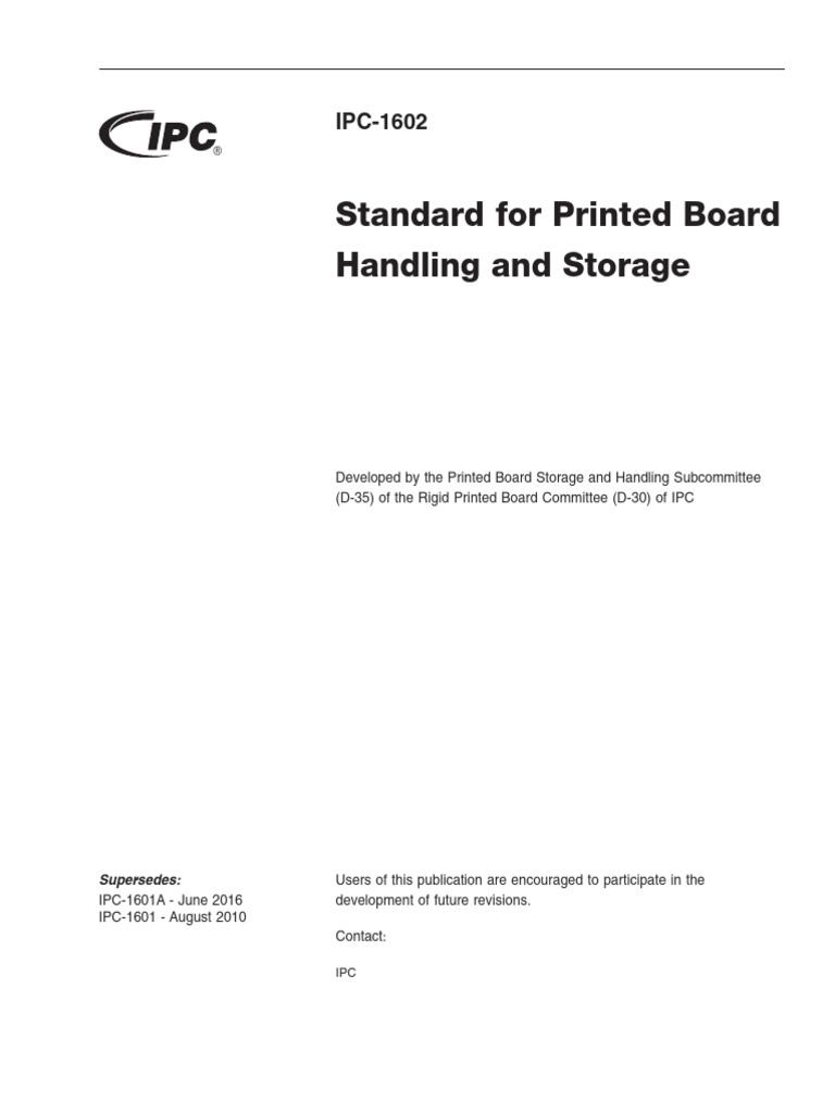 Note: This standard includes requirements for the handling, packaging and storage of printed boards and directly supersedes