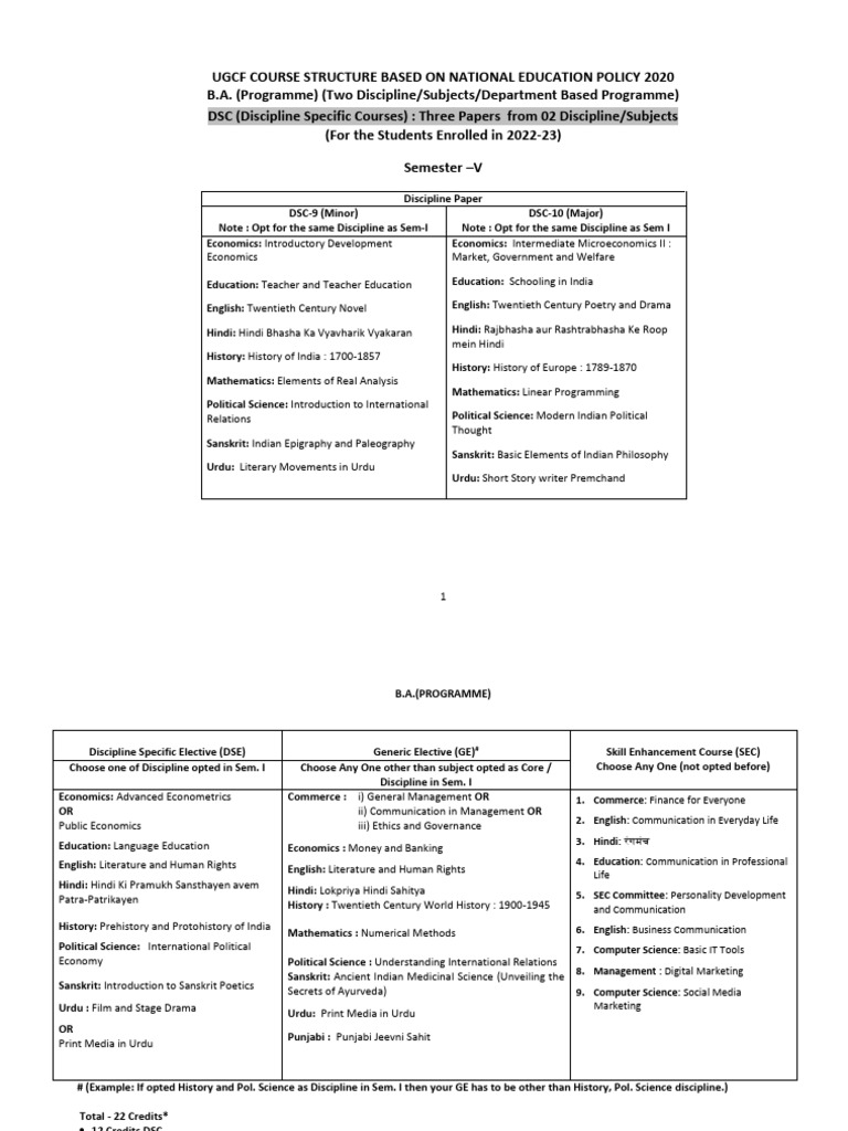 B.A. (Programme) (Two Discipline/Subjects/Department Based Programme)