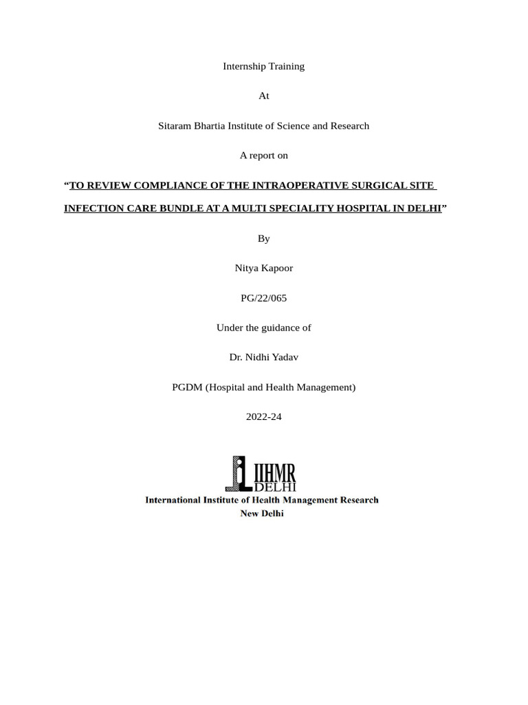 INFECTION CARE BUNDLE AT A MULTI SPECIALITY HOSPITAL IN DELHI”