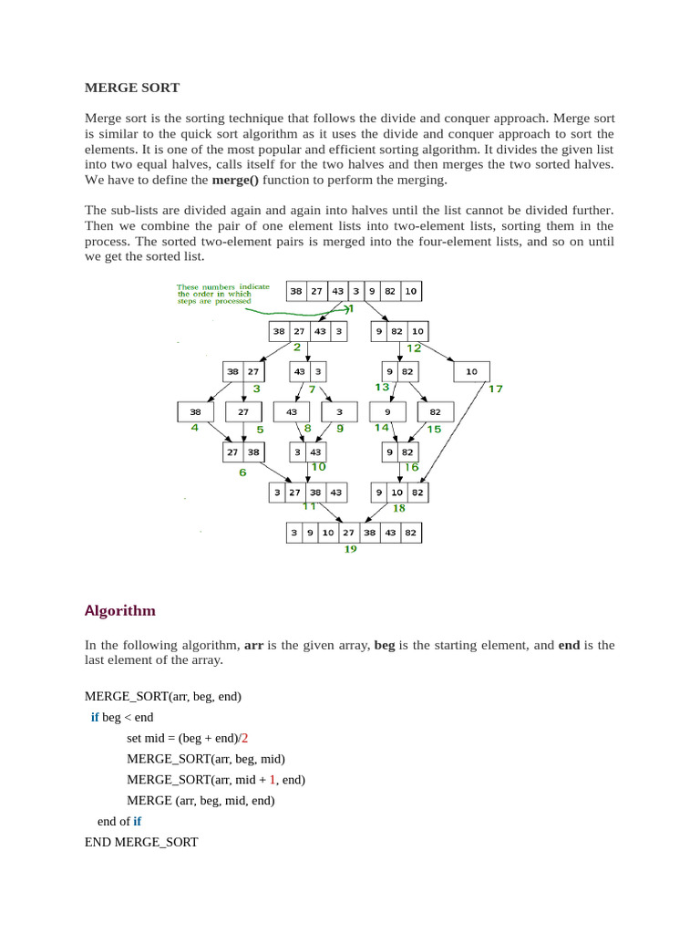 The important part of the merge sort is the MERGE function. This function performs the merging of