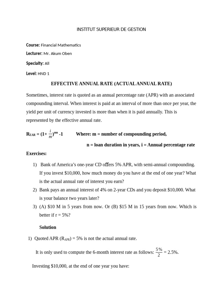 1) Quoted APR (RAPR) = 5% is not the actual annual rate.