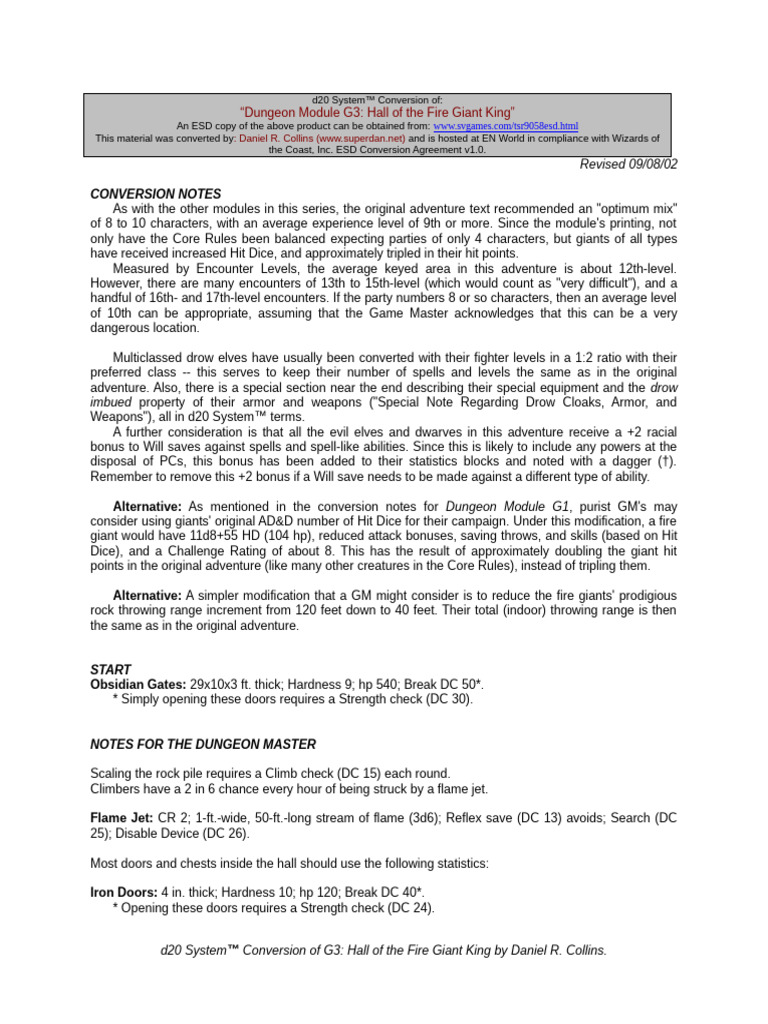 d20 System™ Conversion of G3: Hall of the Fire Giant King by Daniel R. Collins.