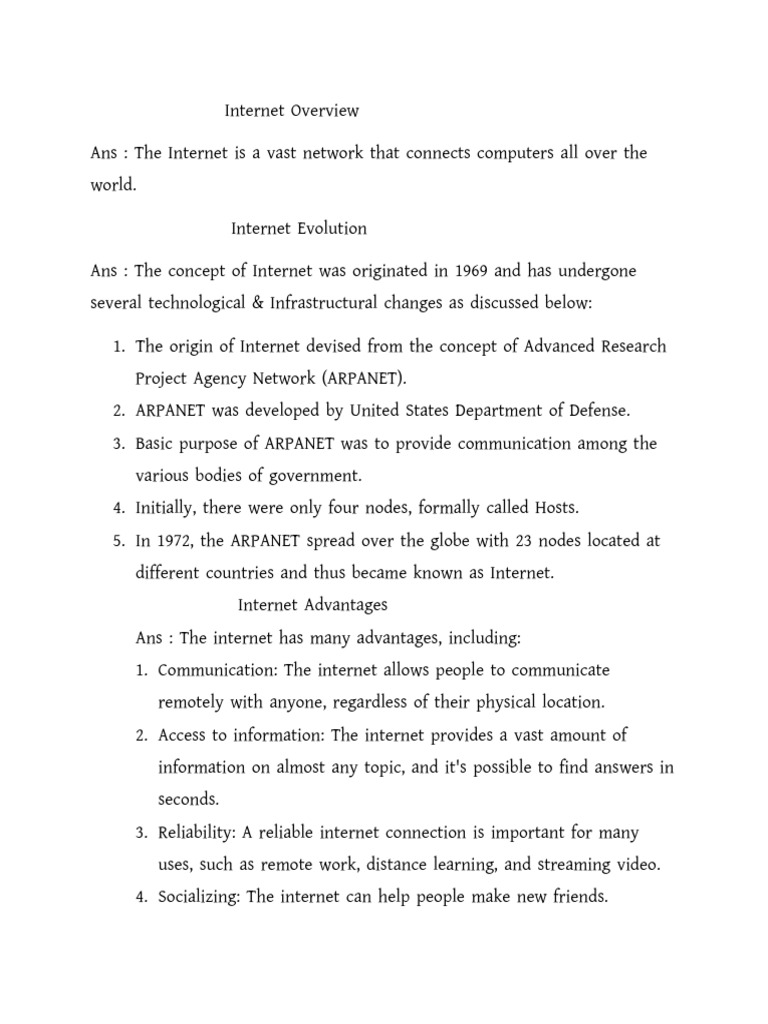 Ans : The concept of Internet was originated in 1969 and has undergone