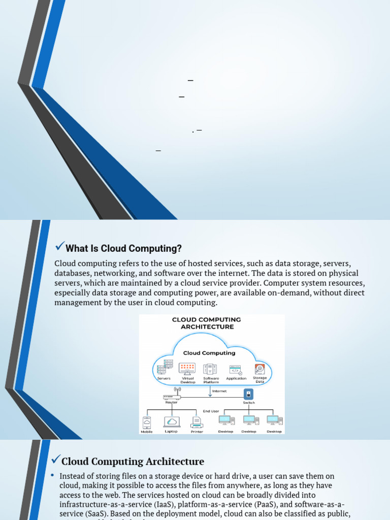 • Further, cloud can be divided into two different layers, namely, front-end and back-