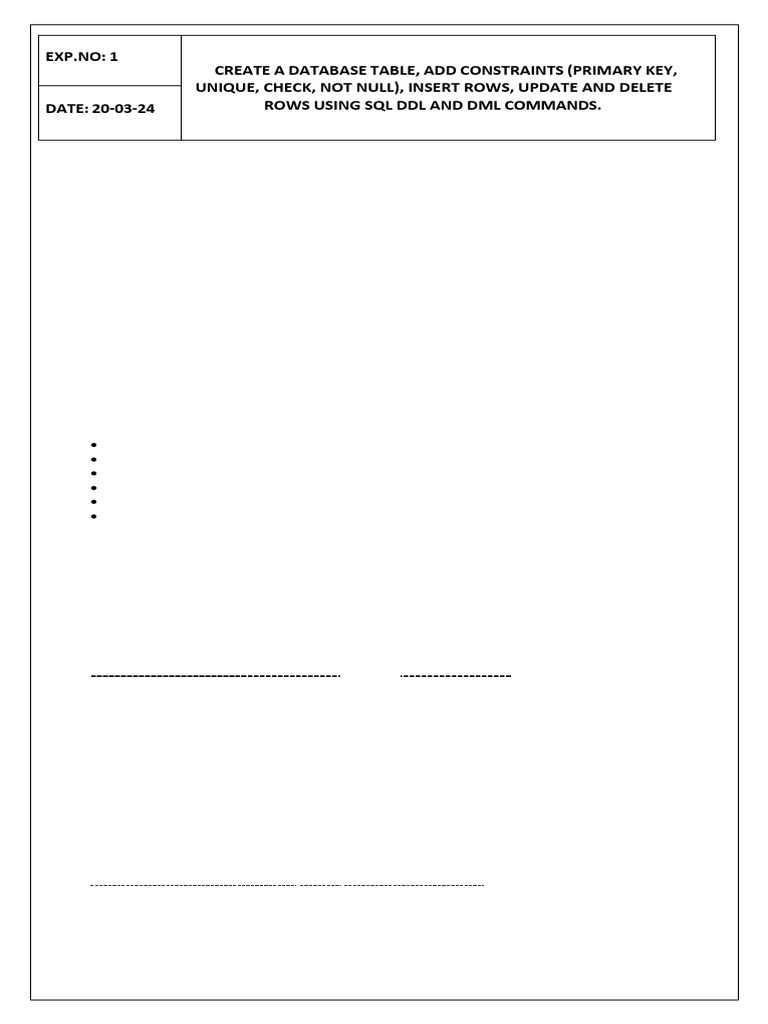 DATE: 20-03-24 ROWS USING SQL DDL AND DML COMMANDS.