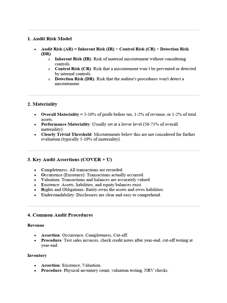 • Audit Risk (AR) = Inherent Risk (IR) × Control Risk (CR) × Detection Risk