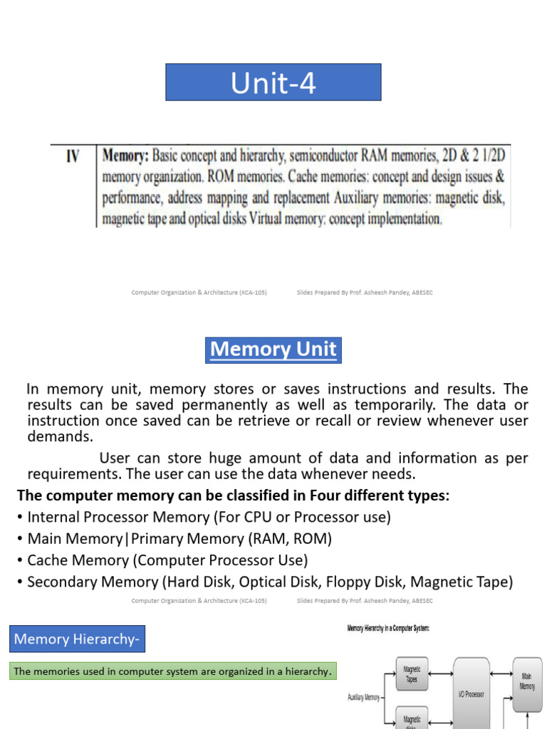 Computer Organization & Architecture (KCA-105) Slides Prepared By Prof. Asheesh Pandey, ABESEC