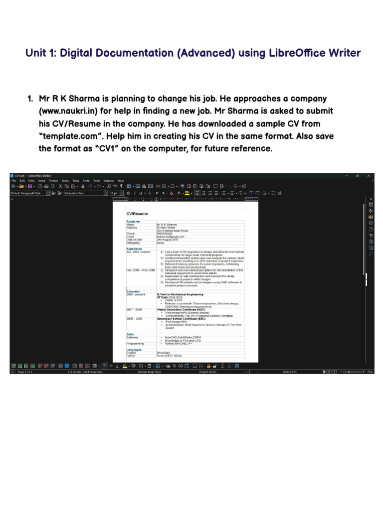 Unit 1: Digital Documentation (Advanced) using LibreOffice Writer