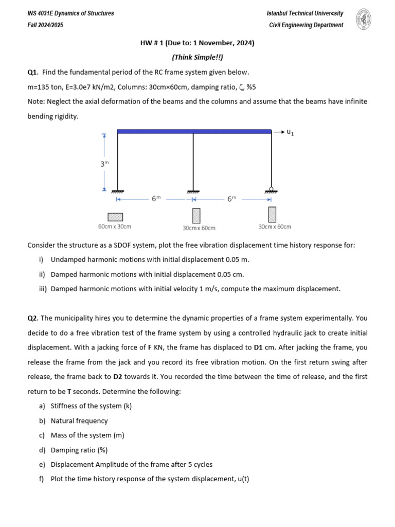 INS 4031E Dynamics of Structures Istanbul Technical Univer<sity