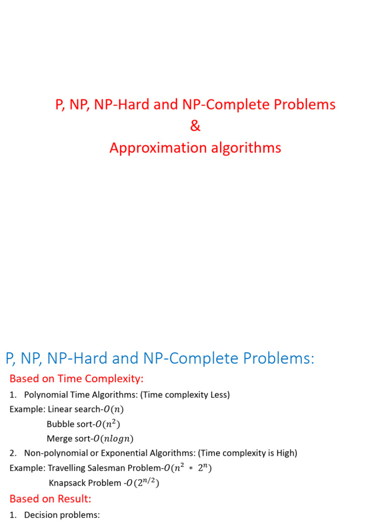 1. Polynomial Time Algorithms: (Time complexity Less)