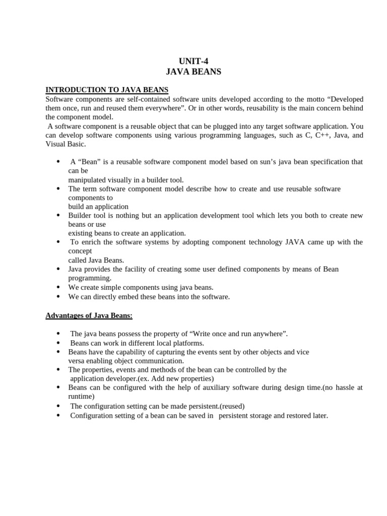 Javabeans Notes