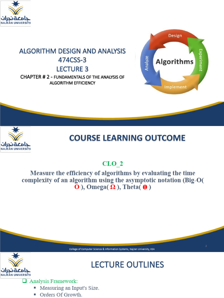 Ø Theoretical Analysis: Proof of correctness and big-O and related notations.