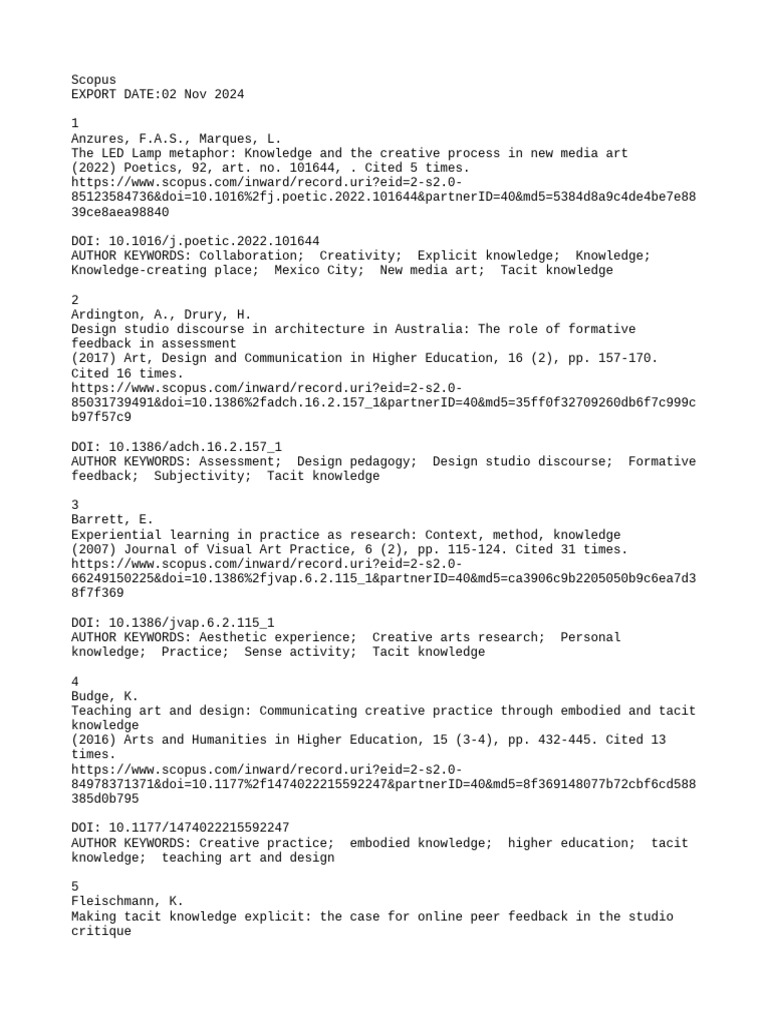 AUTHOR KEYWORDS: Creative practice; embodied knowledge; higher education; tacit