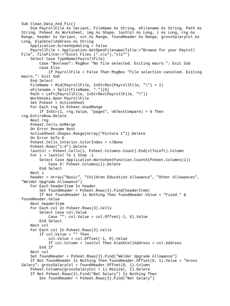 Dim PayrollFile As Variant, FileName As String, eFilename As String, Path As