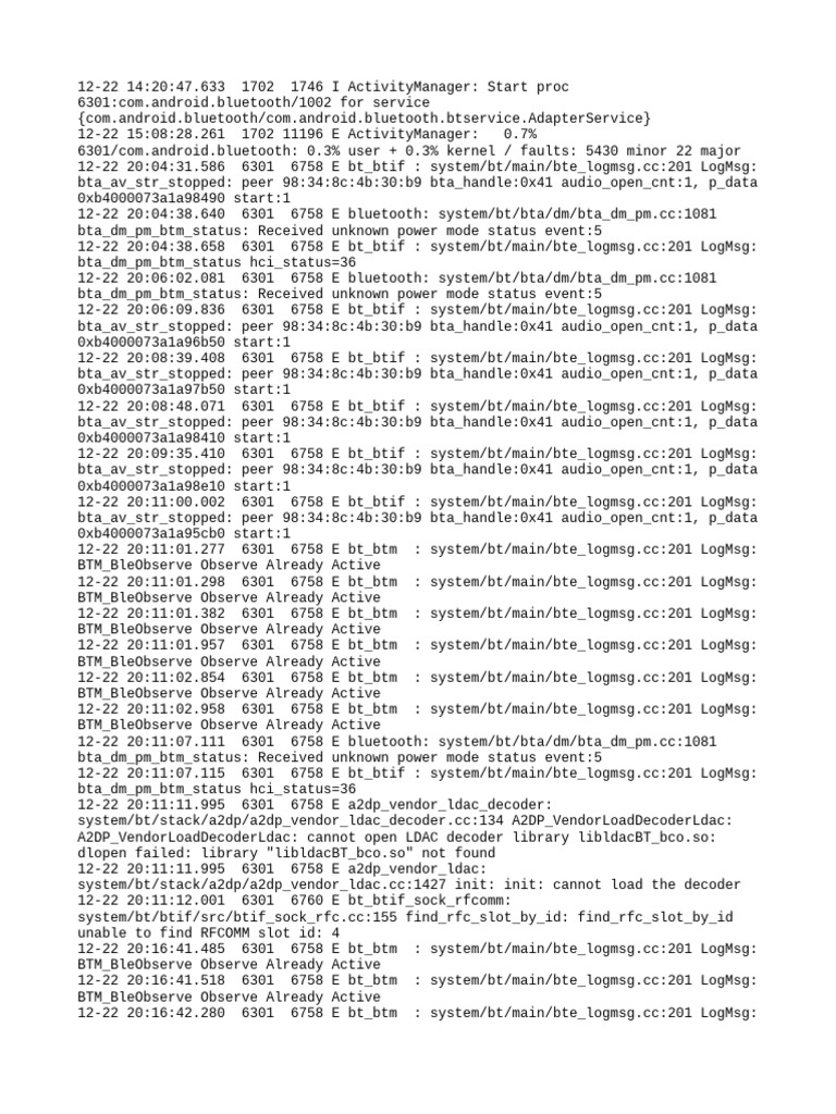 12-22 20:23:27.436 6301 6758 E bt_btm : system/bt/main/bte_logmsg.cc:201 LogMsg: