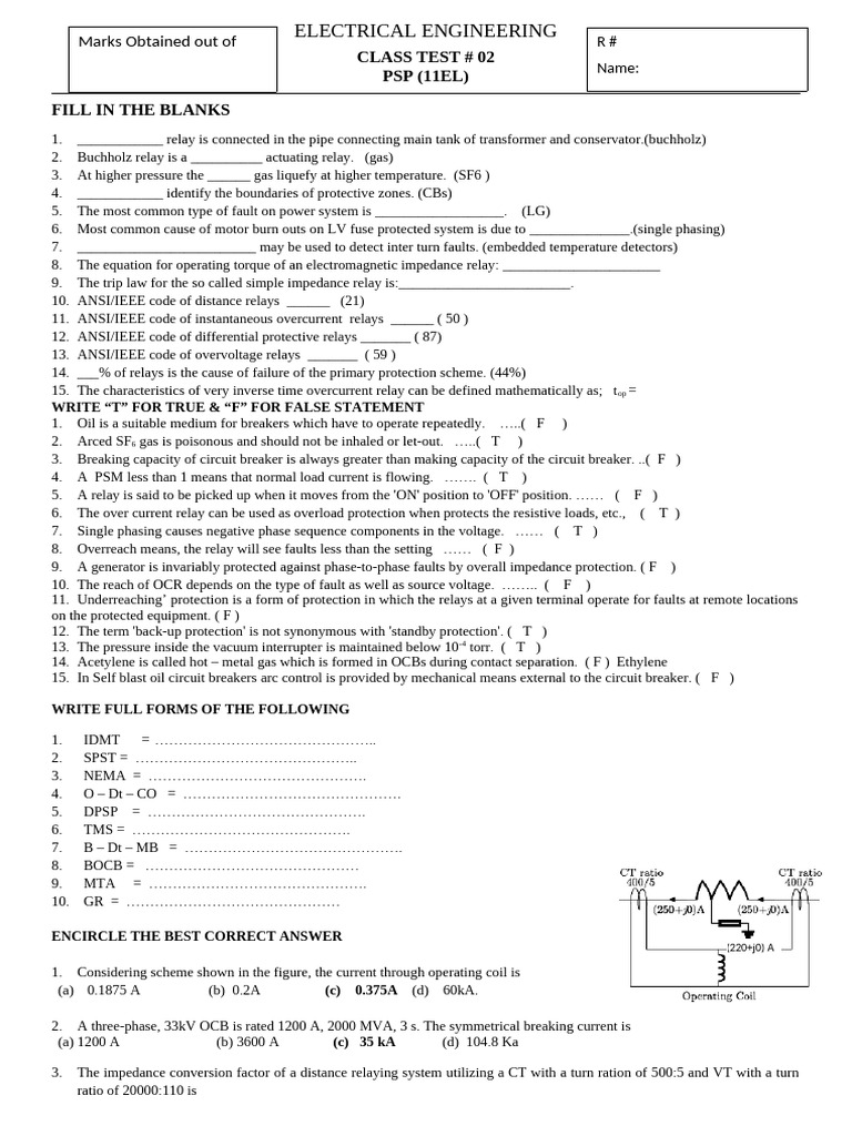 3. Breaking capacity of circuit breaker is always greater than making capacity of the circuit breaker. ..( F )