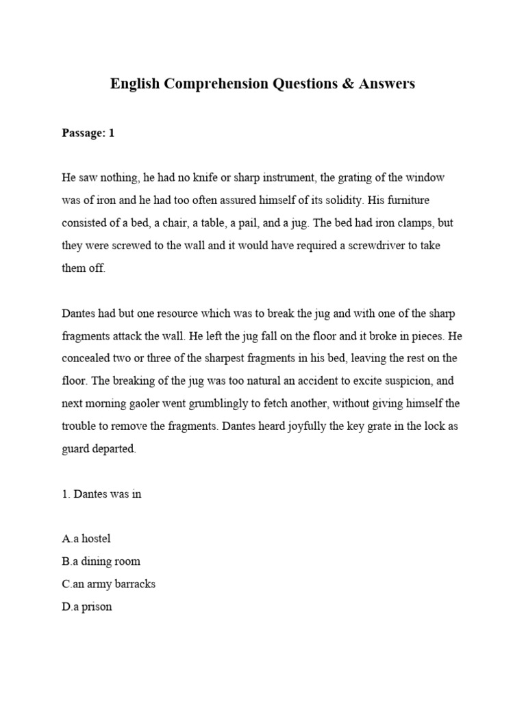 English Comprehension Questions & Answers