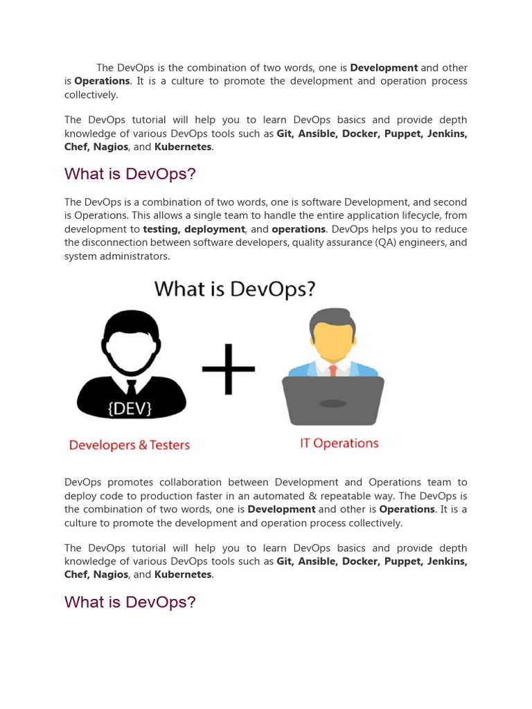 The DevOps tutorial will help you to learn DevOps basics and provide depth