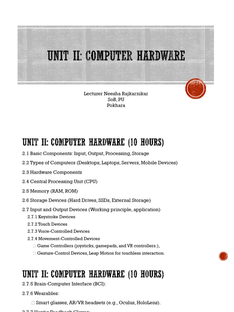 Core Components: Central Processing Unit (CPU), Graphics Processing Unit (GPU),