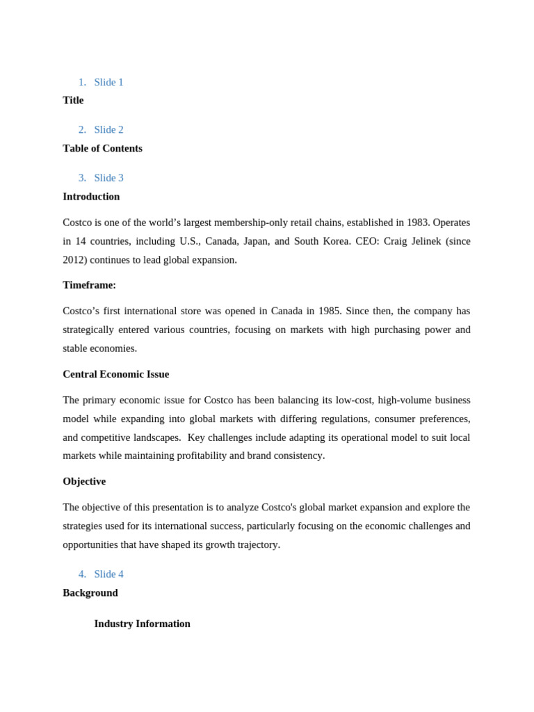 The objective of this presentation is to analyze Costco's global market expansion and explore the