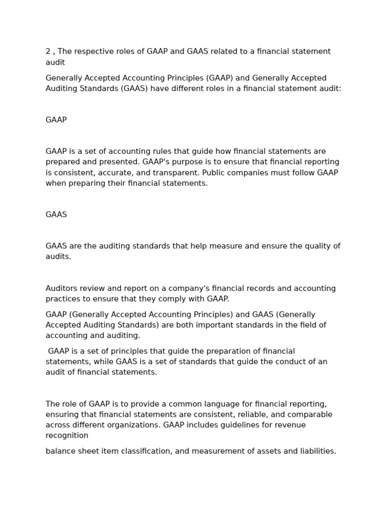2 , The respective roles of GAAP and GAAS related to a financial statement