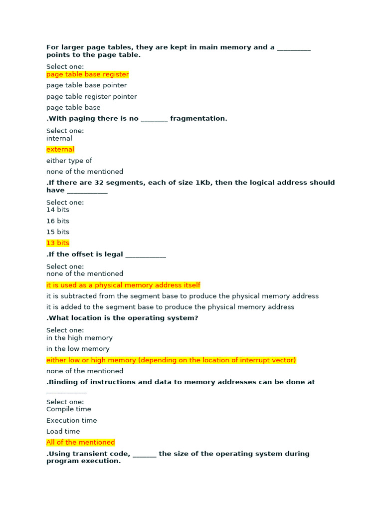 .With relocation and limit registers, each logical address must be _______ the limit