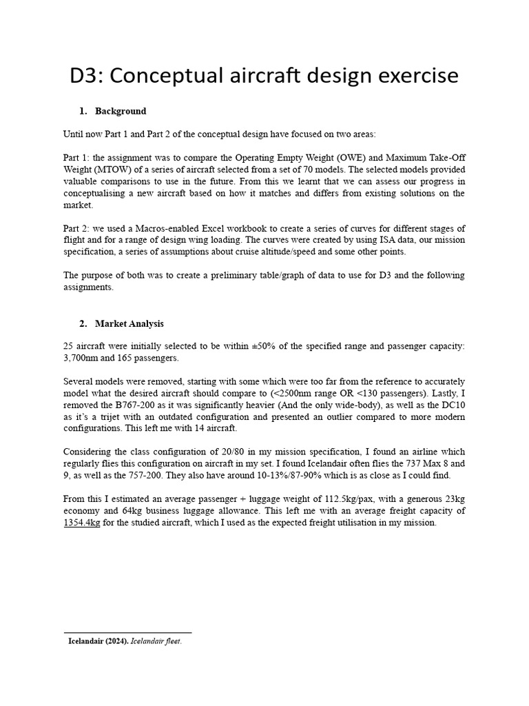 Part 1: the assignment was to compare the Operating Empty Weight (OWE) and Maximum Take-Off