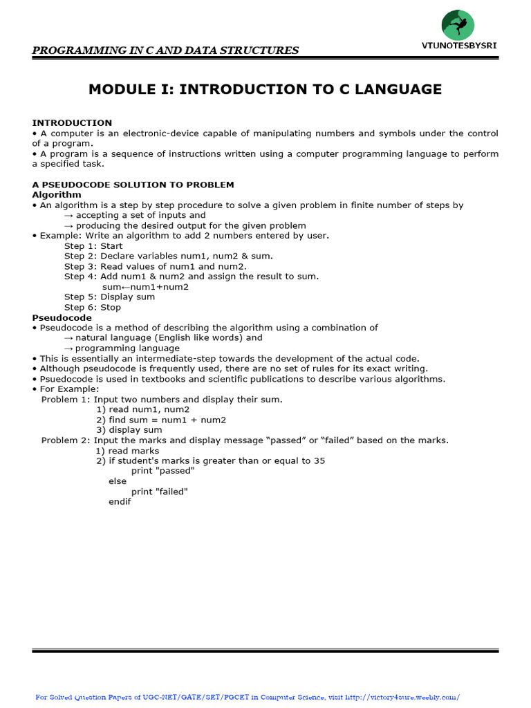 MODULE I: INTRODUCTION TO C LANGUAGE