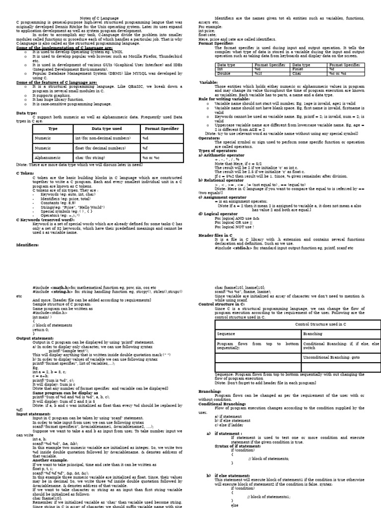 Notes of C Language Identifiers are the names given tot eh entities such as variables, functions,