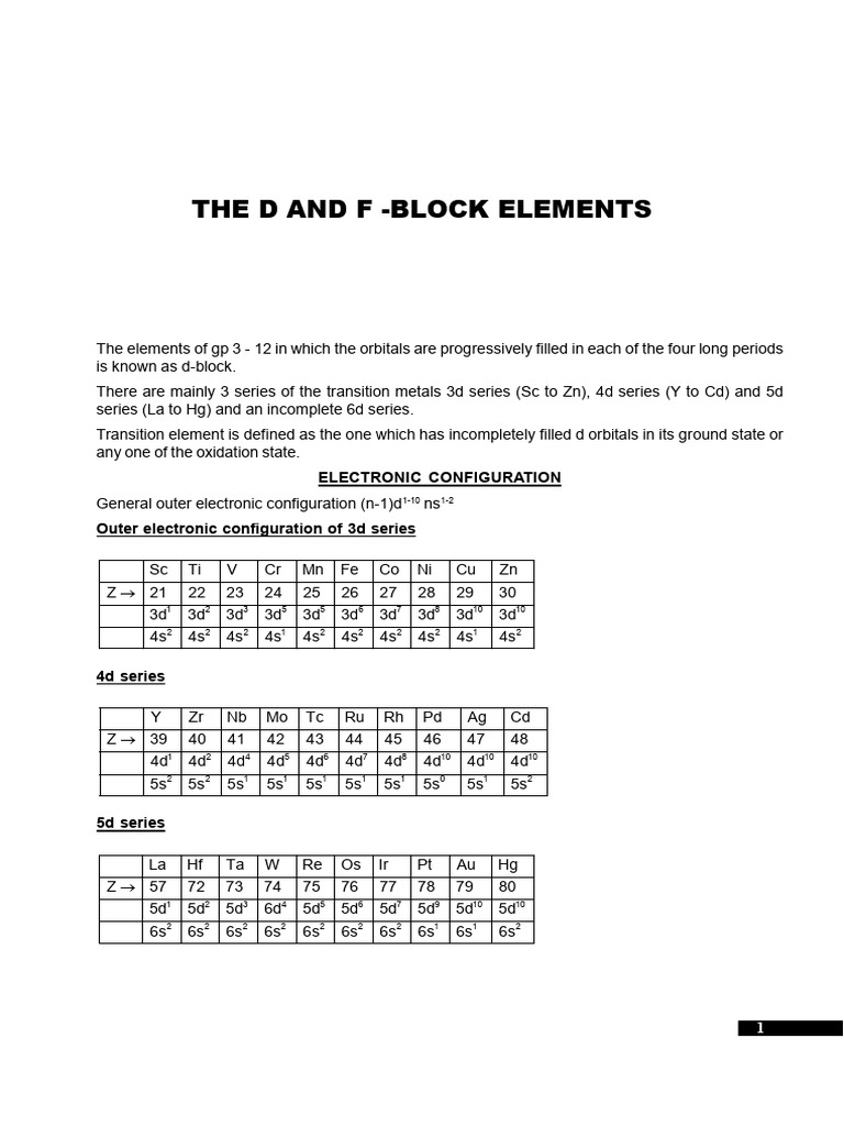 General outer electronic configuration (n-1)d1-10 ns1-2