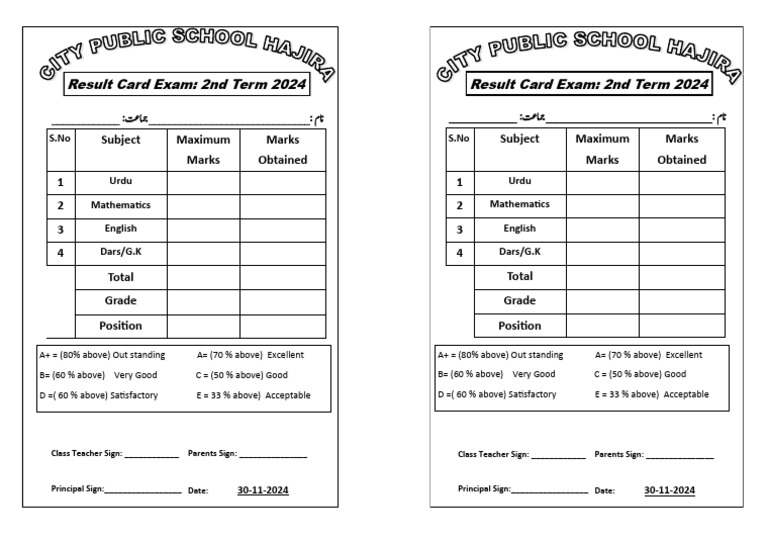 Result Card Exam: 2nd Term 2024 Result Card Exam: 2nd Term 2024